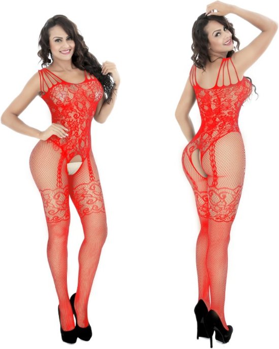 Open Bodystocking - Rood - One Size Fits Most - TL15