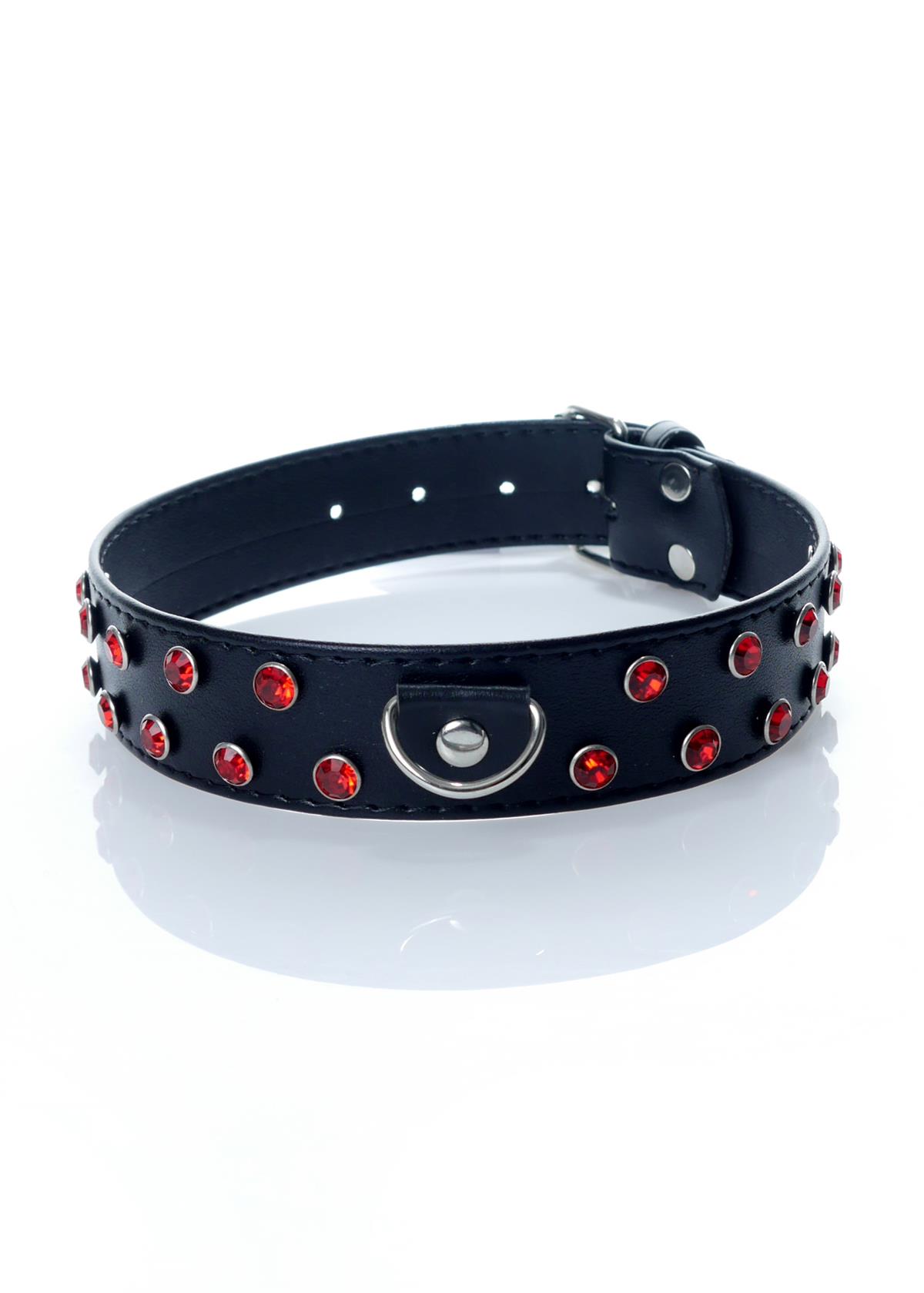 Bossoftoys - Fetish Collar Red with stones - 3 cm width - REd line adjustable - easy to hang - with product tag /barcode - 33-00122