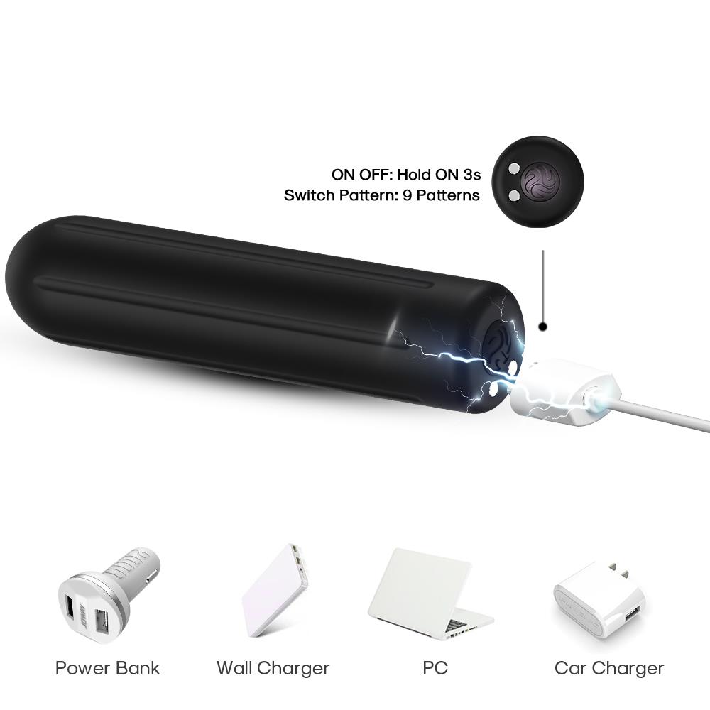 Bossoftoys - 52-00004 - Powerful Rock Bullet - USB rechargeable - 9 vibration modes - mat black