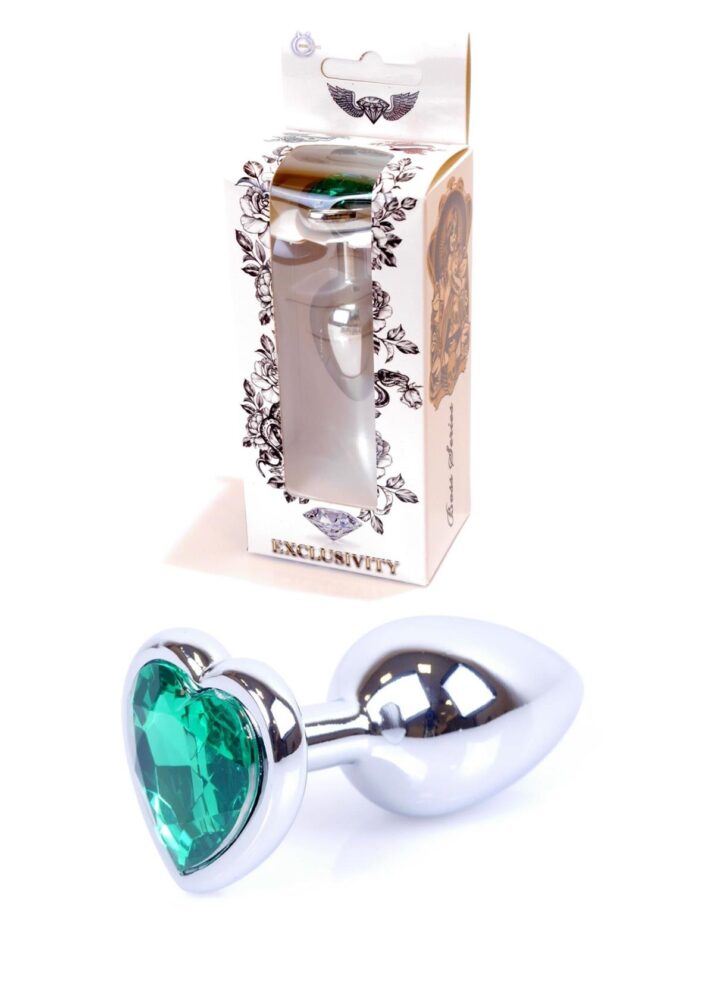 Bossoftoys - 64-00051 - Heart design silver Plug - Silver - Anal - Heart - Green stone - length 7 cm - dia 2,7 cm - window colour box