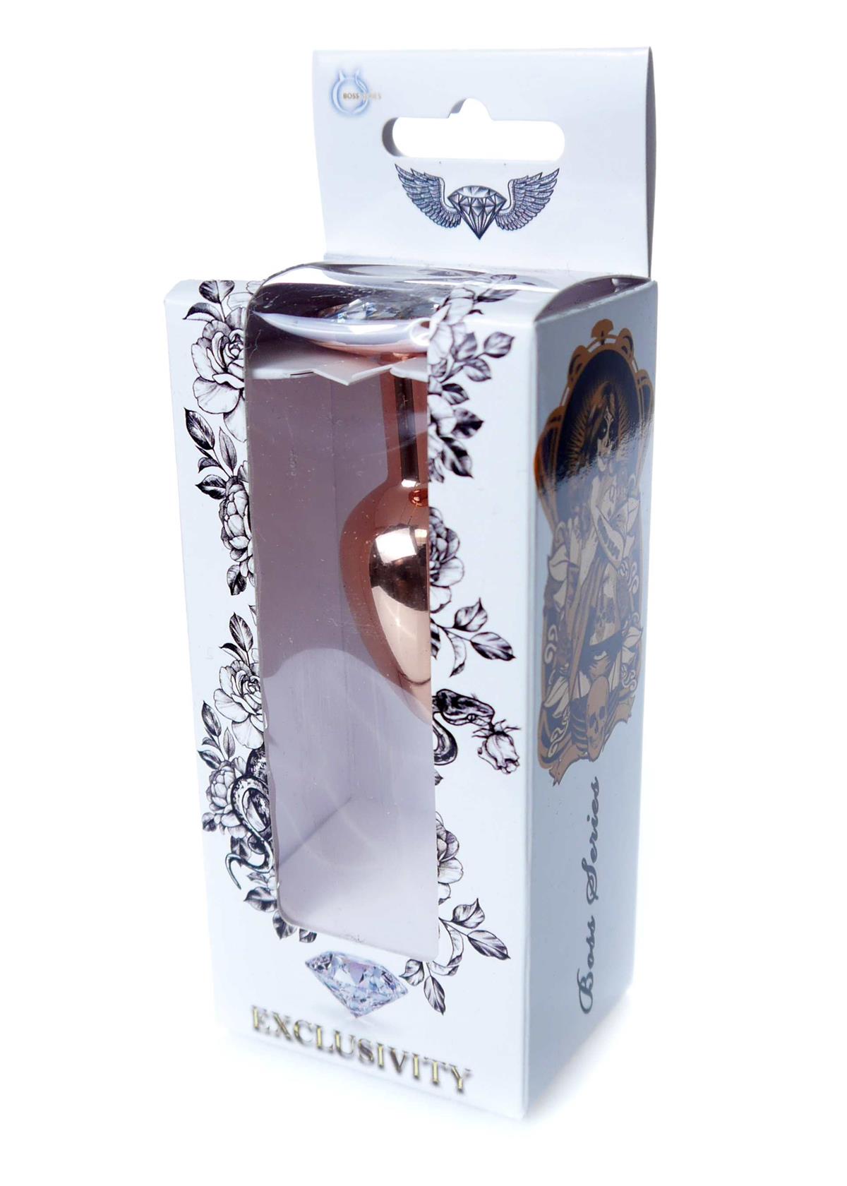 Bossoftoys - Unique Colour - Rose Gold Anal Plug - Gold Plug with White stone - 64-00112 - length 7 CM - Dia 2,7 CM - colour window box