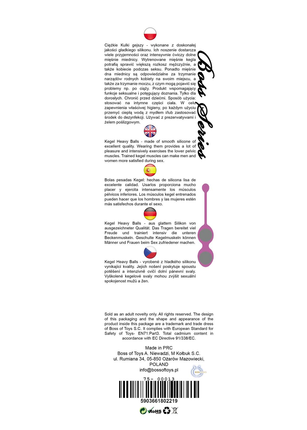 What are the benefits of systematic kegel training? First, the exercised muscles become stronger. Secondly, stronger muscles will be much more enjoyable during sex with both of them. Just carrying balls that tremble inside is a lot of fun. The balls ensure maximum safety of use. Covered with the highest quality medical silicone. It is odorless, non-sticky and pleasant to the touch. She takes body temperature easily.Dimensions: