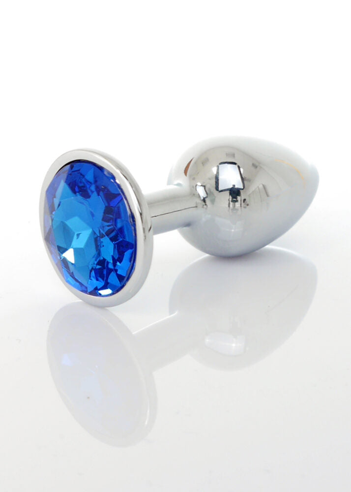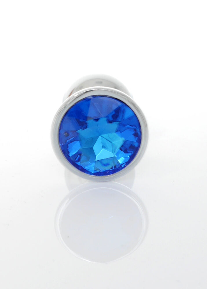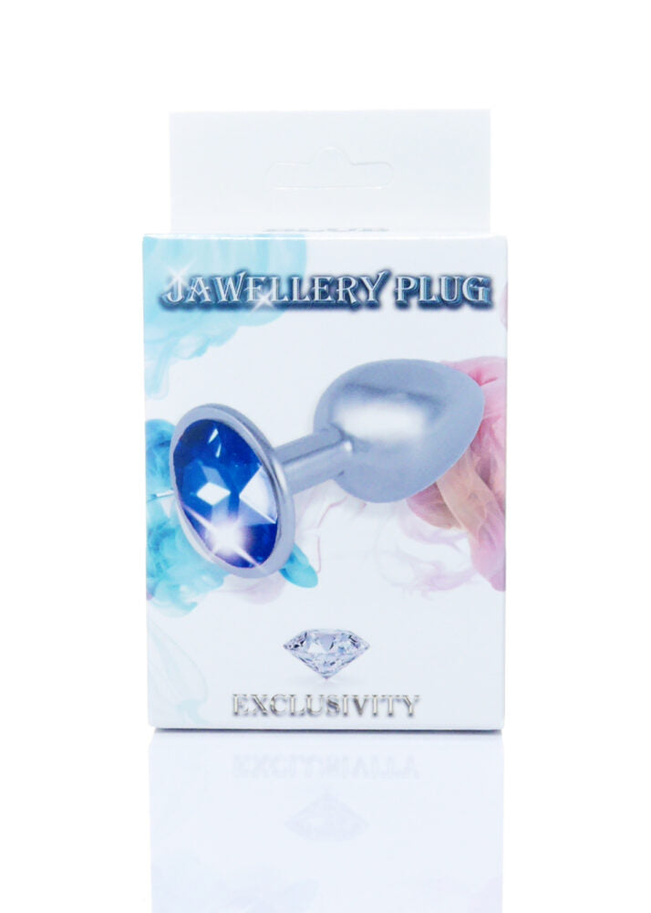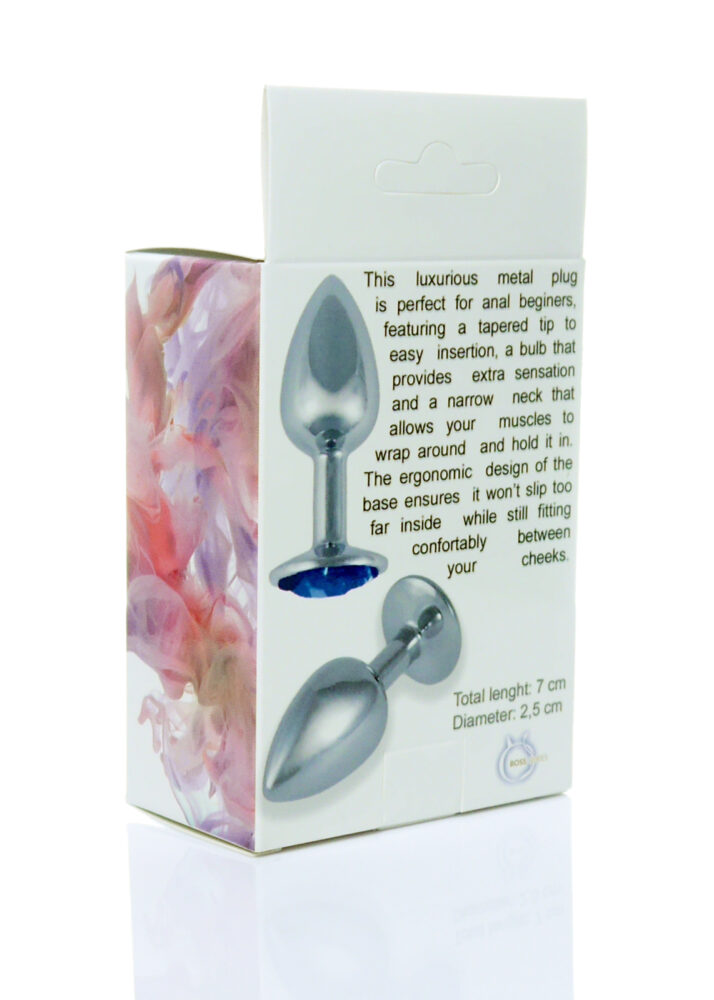 Bossoftoys presents silver Plug with Darkblue stone - length 7 cm - dia 2,7 cm - 26-00091 - colour box