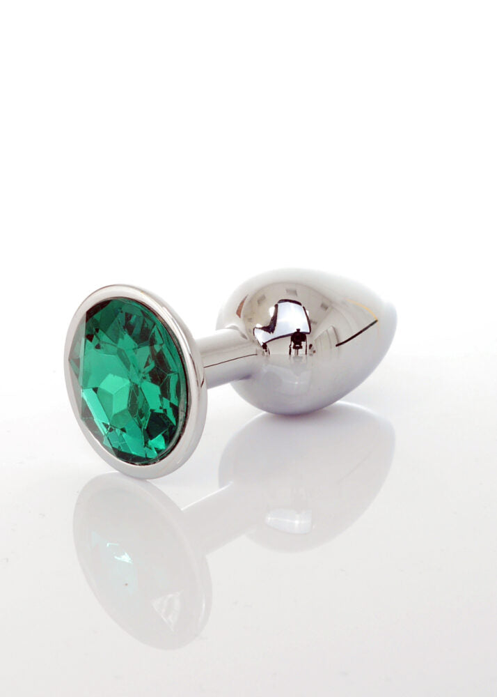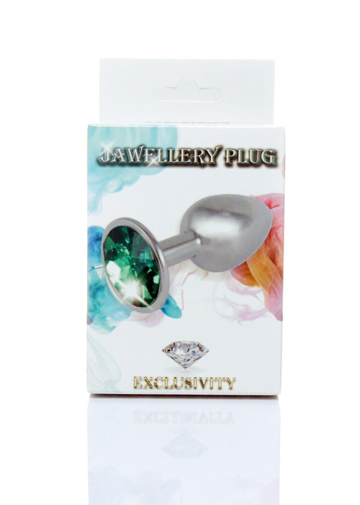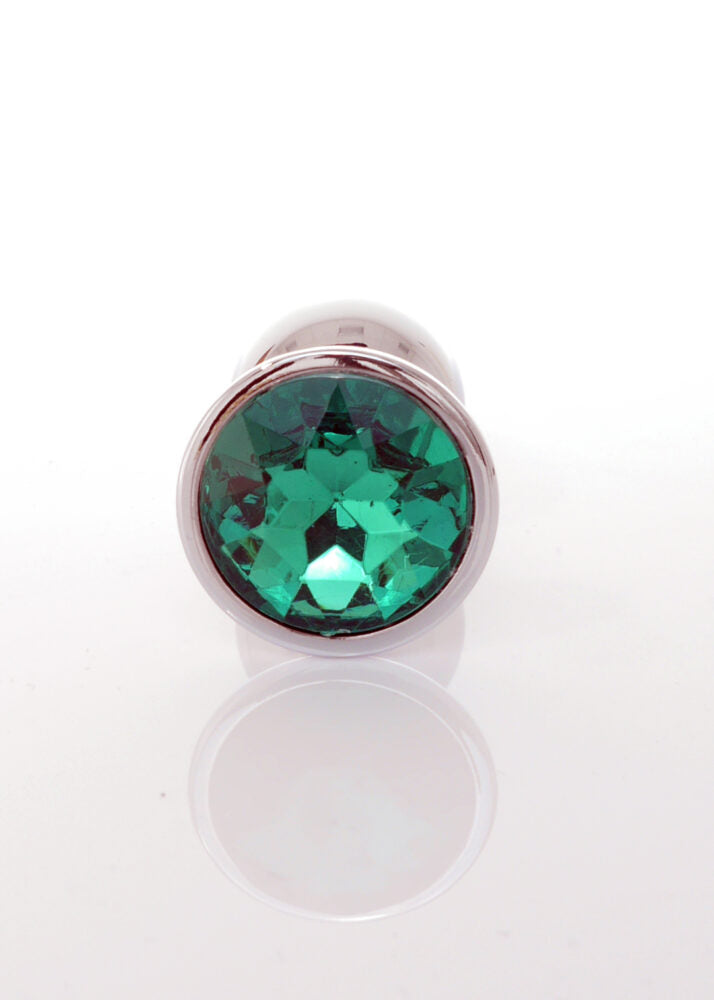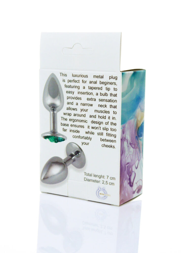 Bossoftoys presents silver Plug with Green stone - length 7 cm - dia 2,7 cm - 26-00089 - window colour box