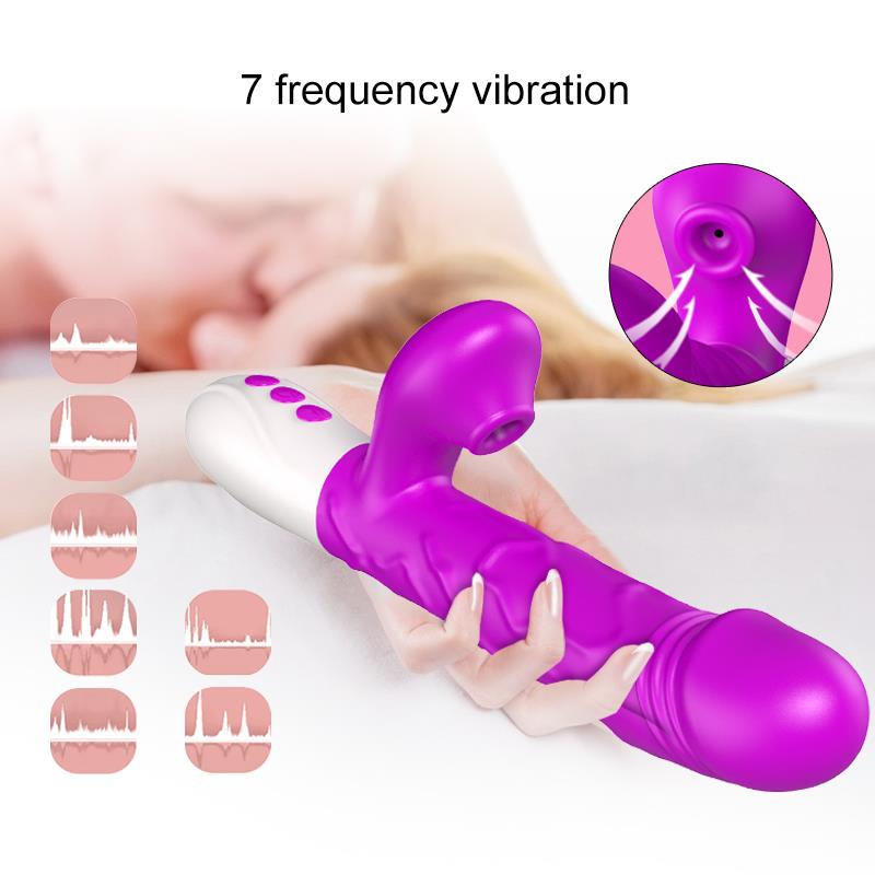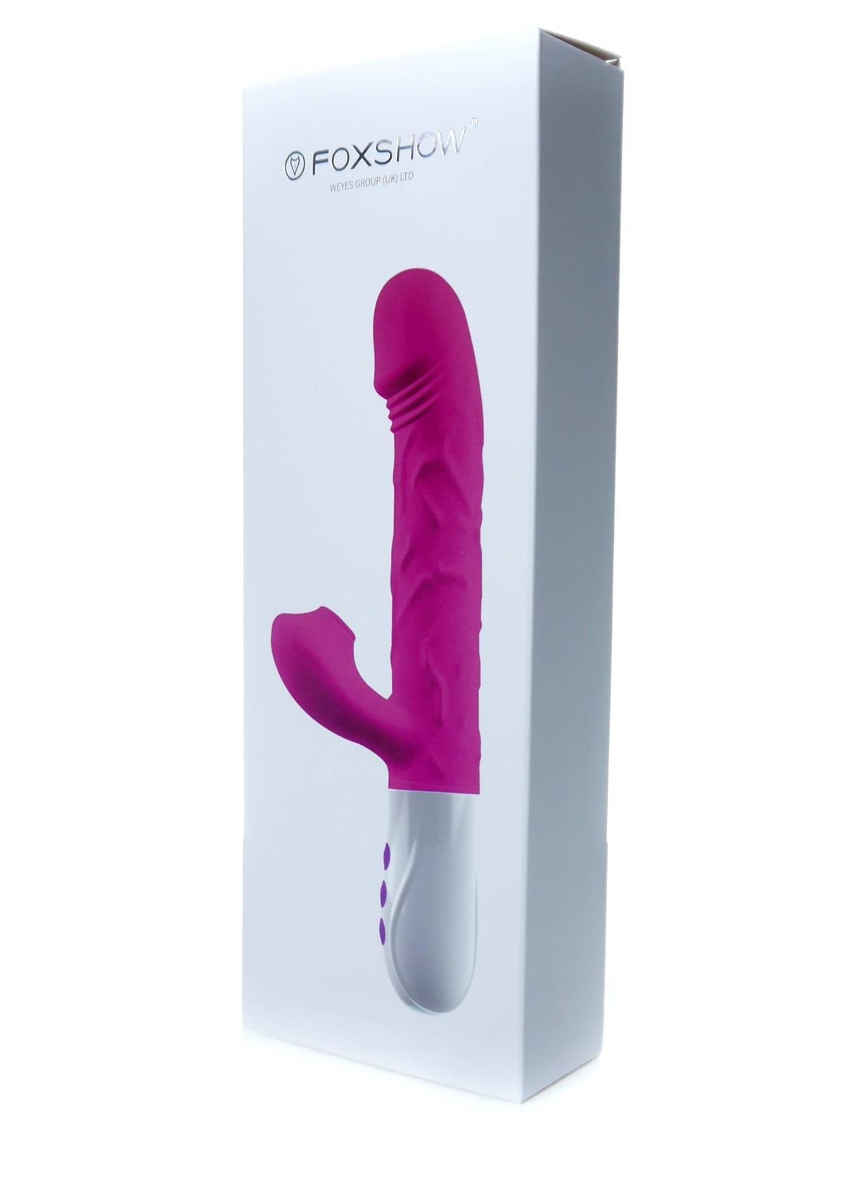 Foxshow - 63-00054 - G spot Vibrator -Silicone, 7 function - 3 Thrusting - Airsucking - Heating - 7 Frequency Of Sucking - Luxury Giftbox - Purple