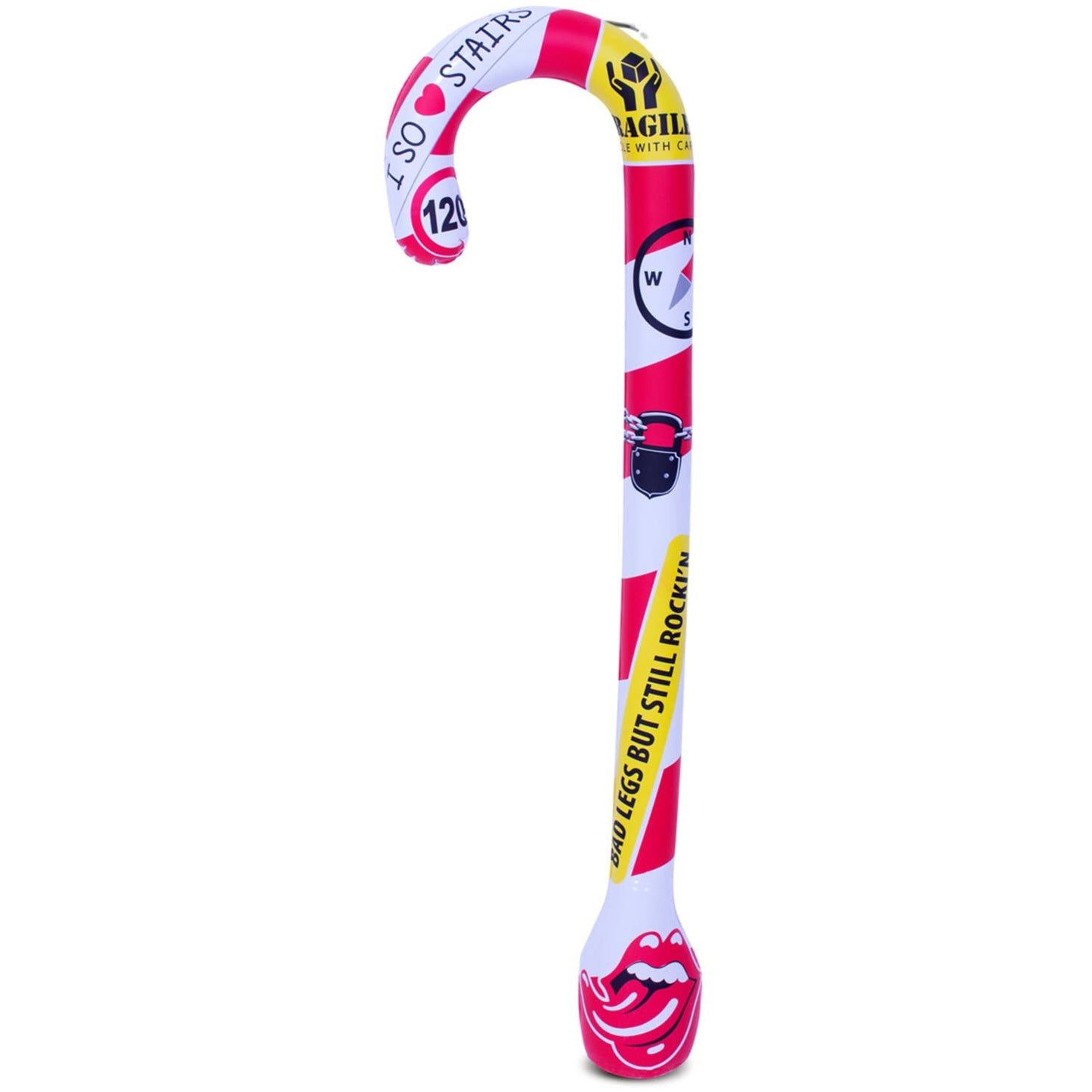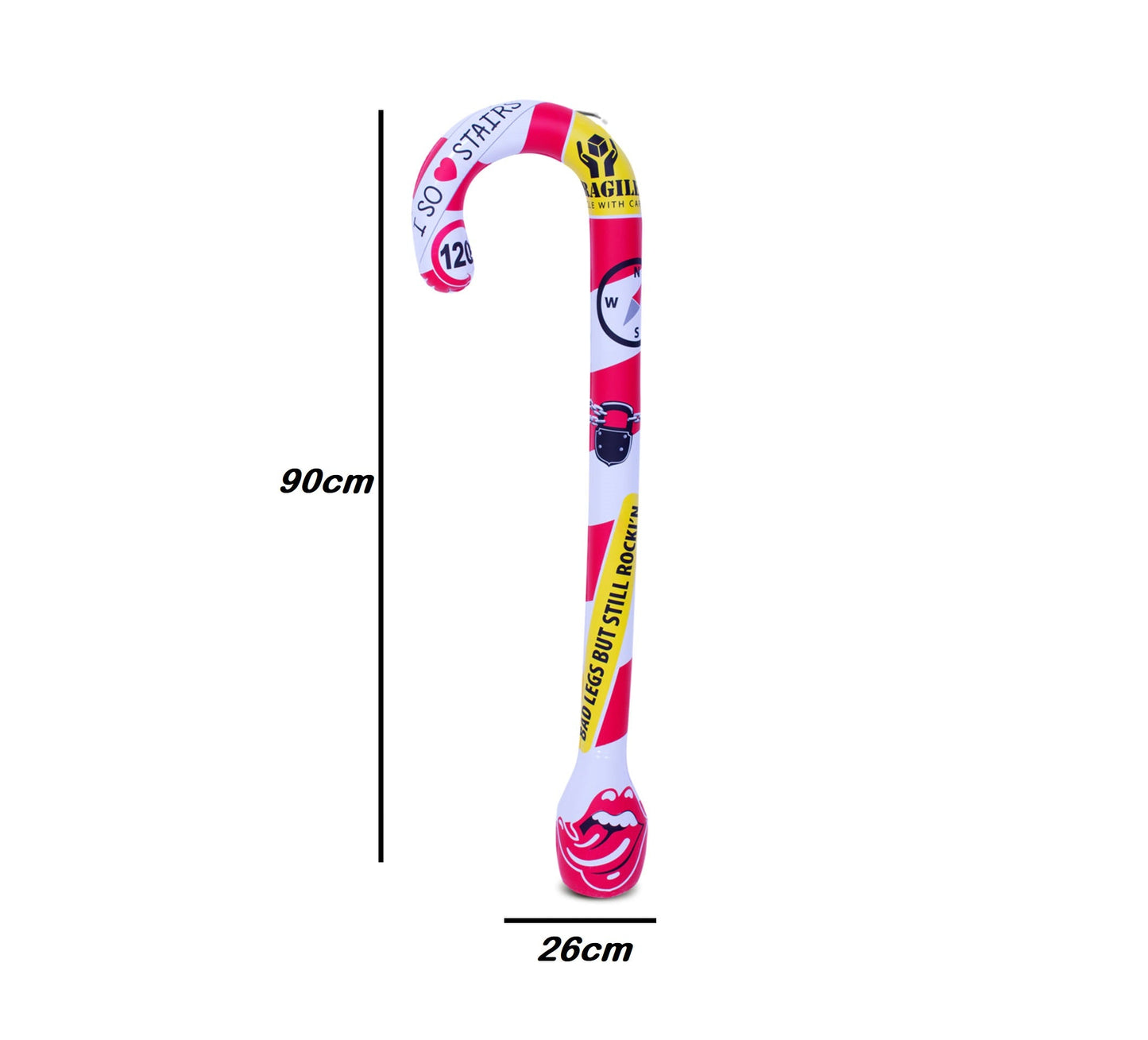 Een opvallend en levendig ontwerp: Met zijn vrolijke bedrukking en levendige kleuren valt deze opblaasbare wandelstok zeker op. De grappige details en speelse uitstraling geven een komische twist aan elke feestelijke setting. Of het nu wordt gebruikt als decoratie of als accessoire voor de jarige, deze wandelstok zorgt voor een lach op ieders gezicht.