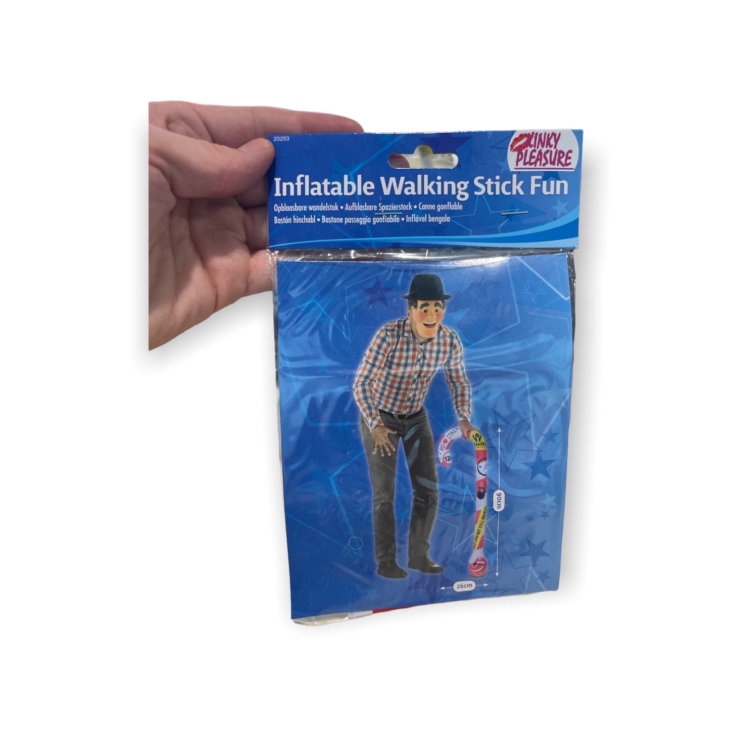 Handig formaat voor feestelijk gebruik: Met een lengte van 90 cm is deze opblaasbare wandelstok perfect geschikt voor feestelijk gebruik. Het formaat maakt het gemakkelijk om de wandelstok vast te houden en ermee rond te lopen tijdens feestelijke activiteiten. Of het nu wordt gebruikt als accessoire bij een verkleedpartij of gewoon als hilarische decoratie, deze opblaasbare wandelstok voegt een speels en ondeugend element toe aan het feest.