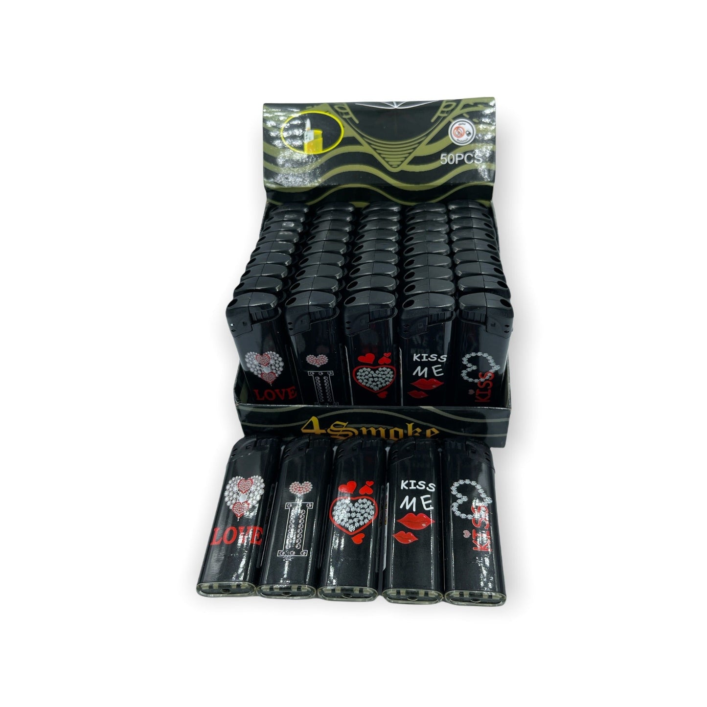 Kinky Pleasure - M010 - Lighters for Sigaret - Display 50 Pieces - Kiss/Love Black - 1 Piece