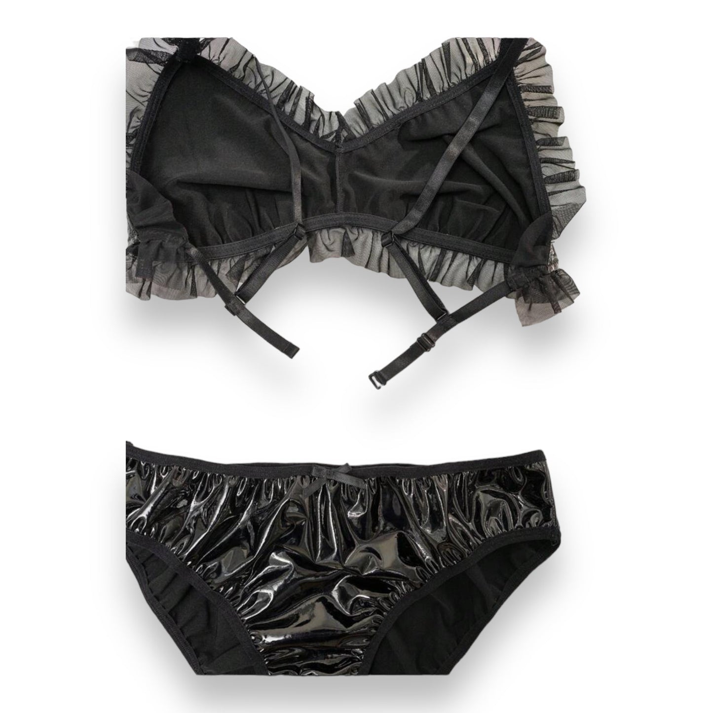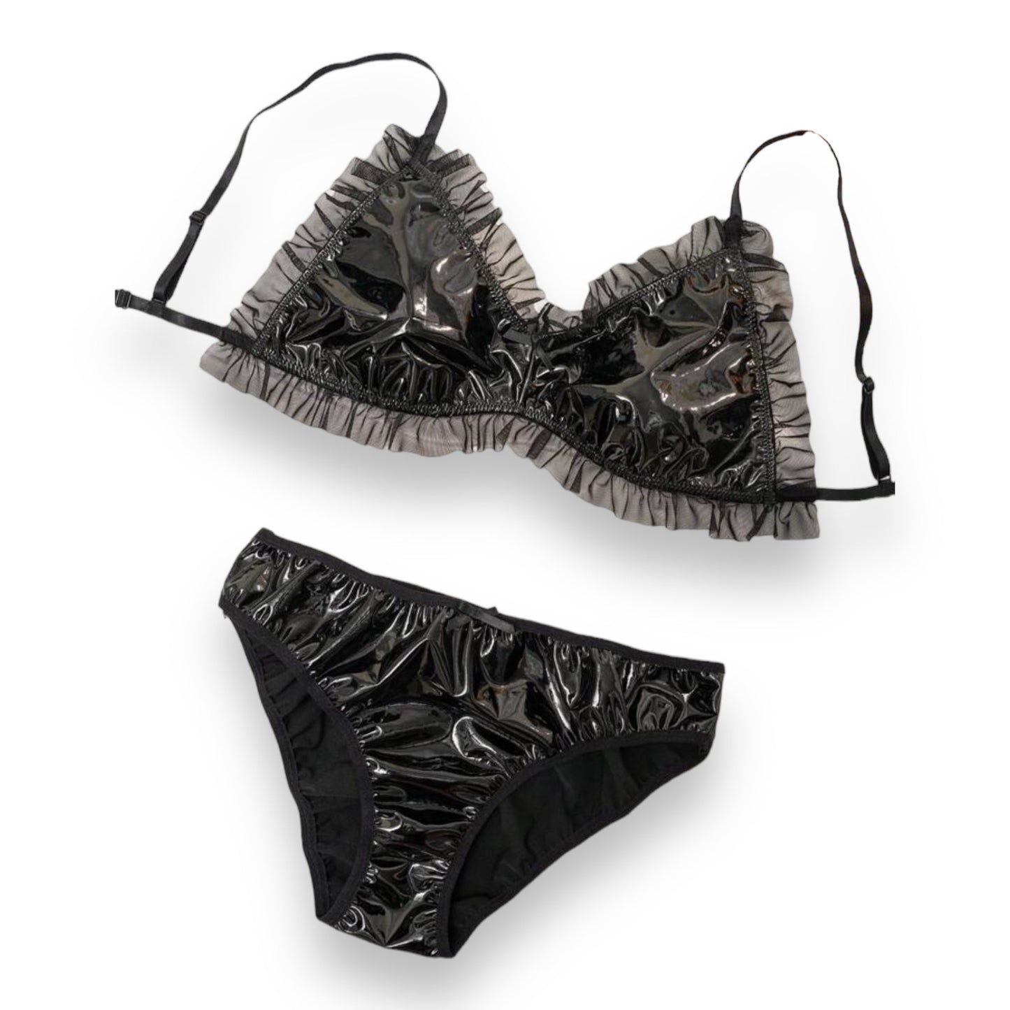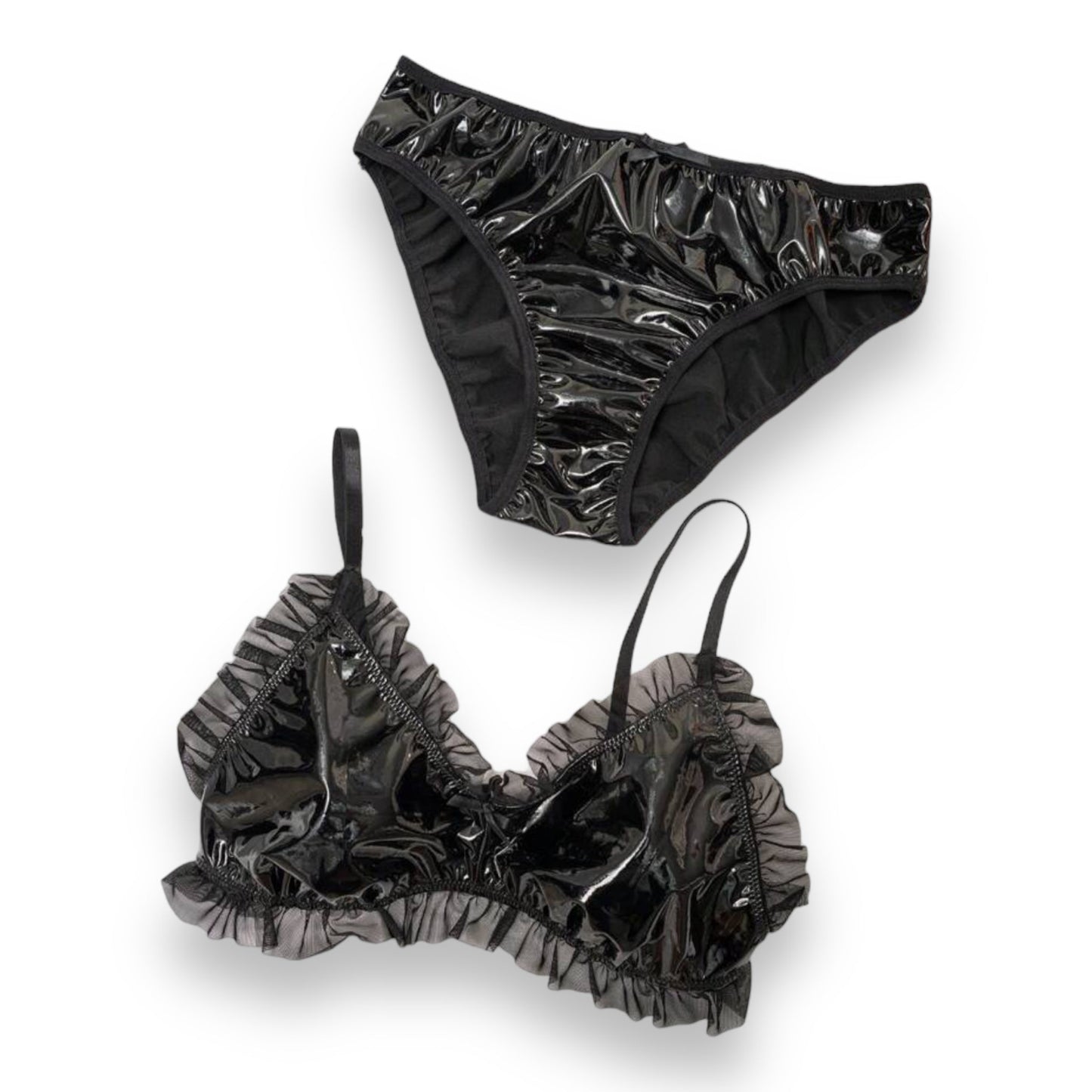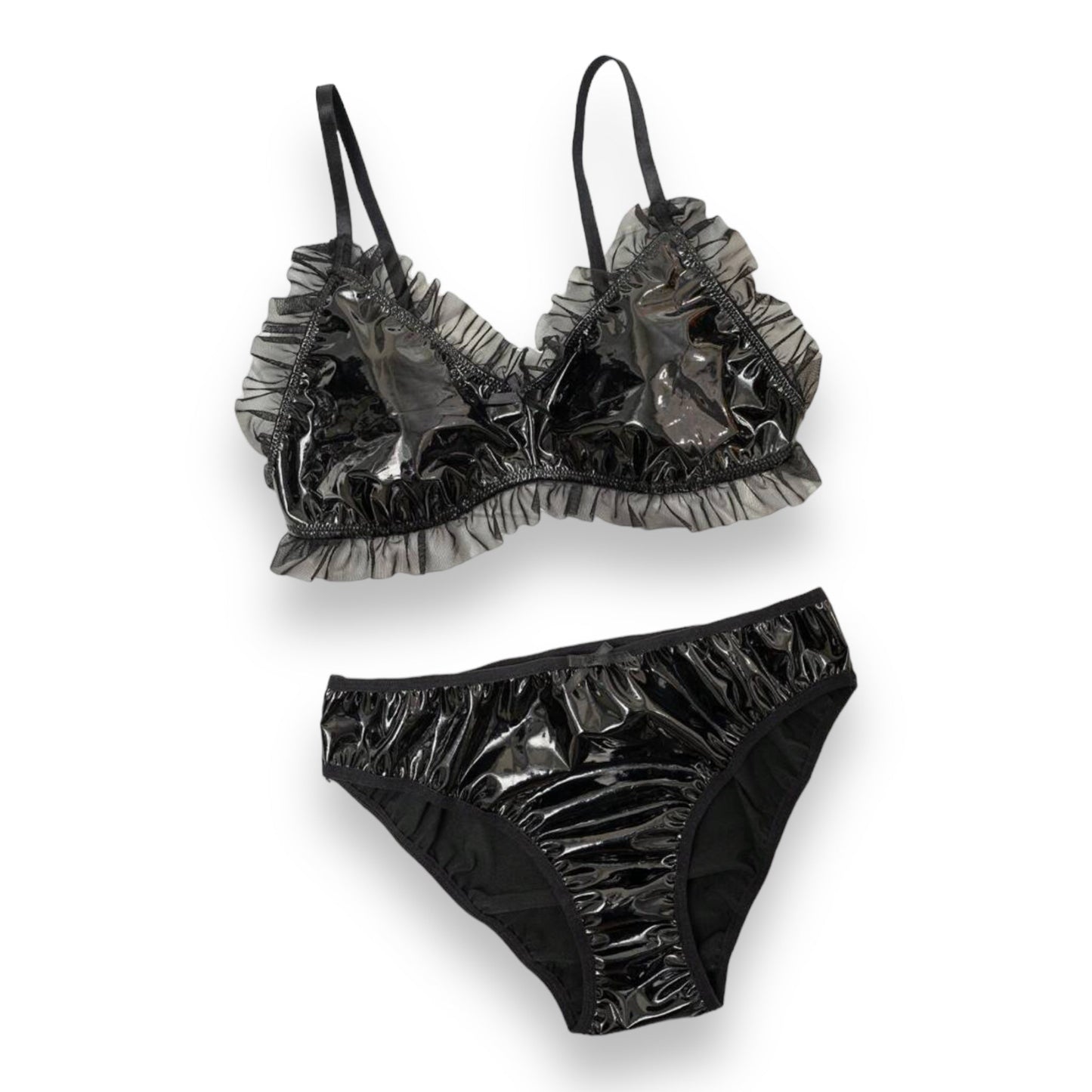 Wetlook Lingerie Set Zwart - Maat: Groot 40/42 - BULK Aanbieding