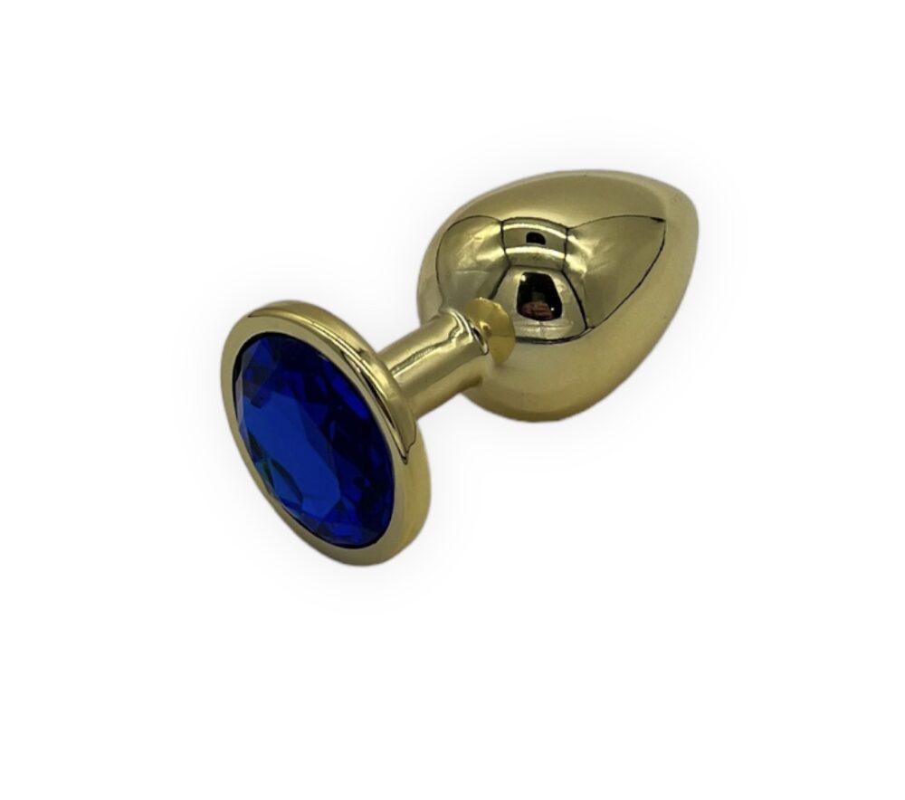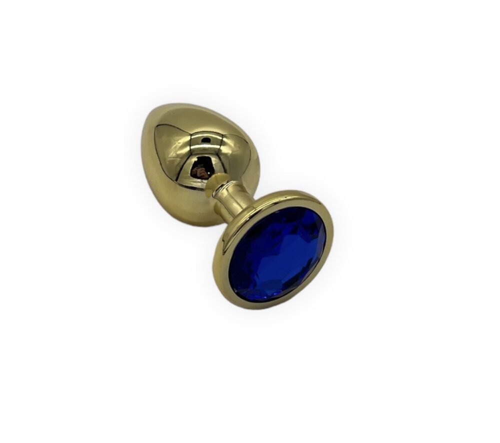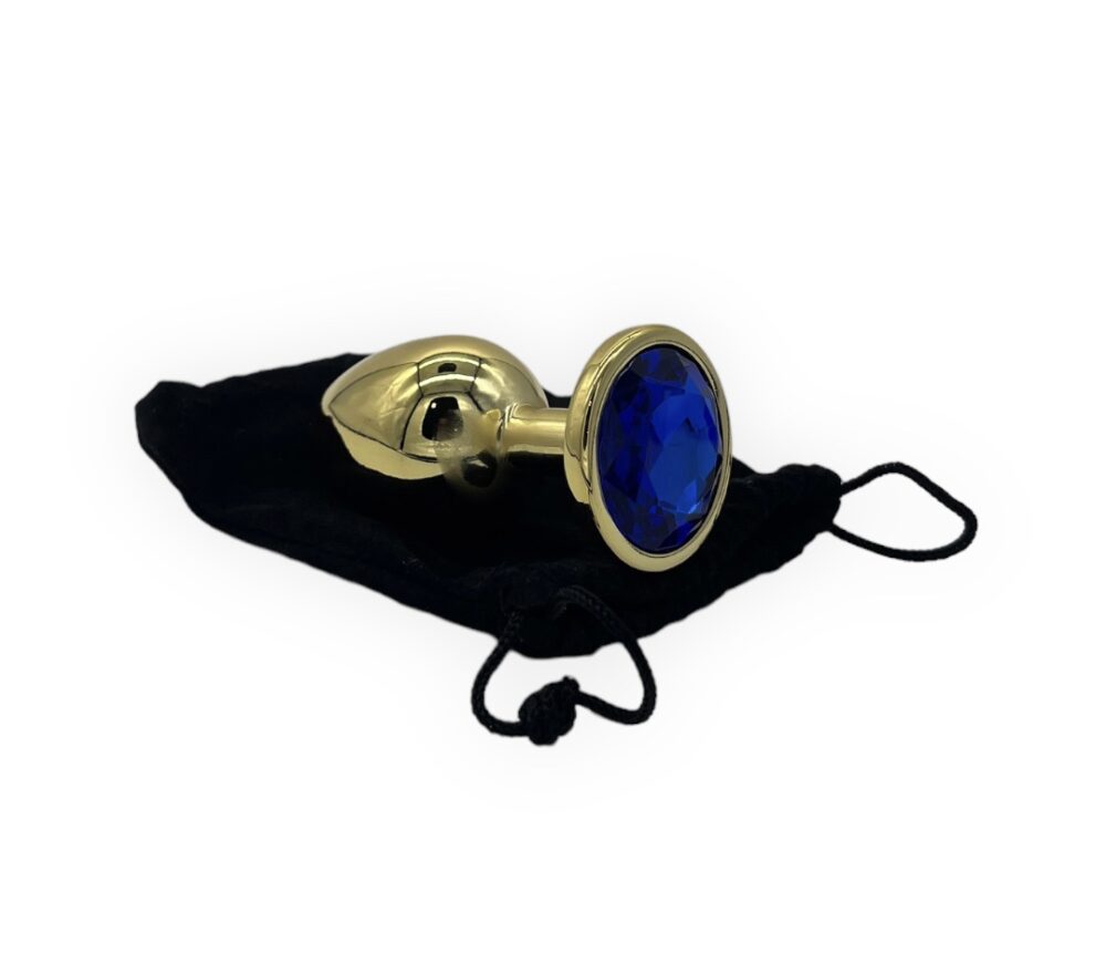 Power Escorts - BR211LDarkblue- Diamond King Gold Plug Large - Diameter 4 cm - Length 9.5 cm - Anal Plug - Gold with Darkblue Stone