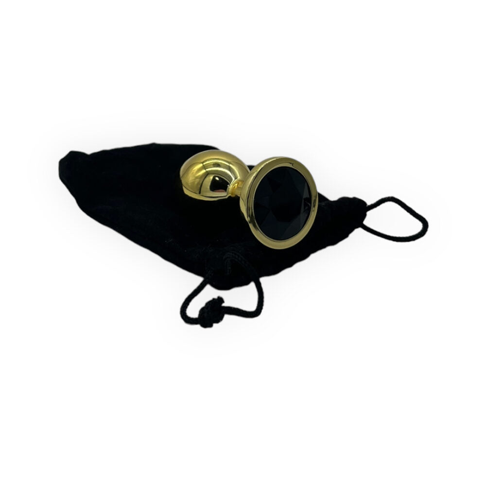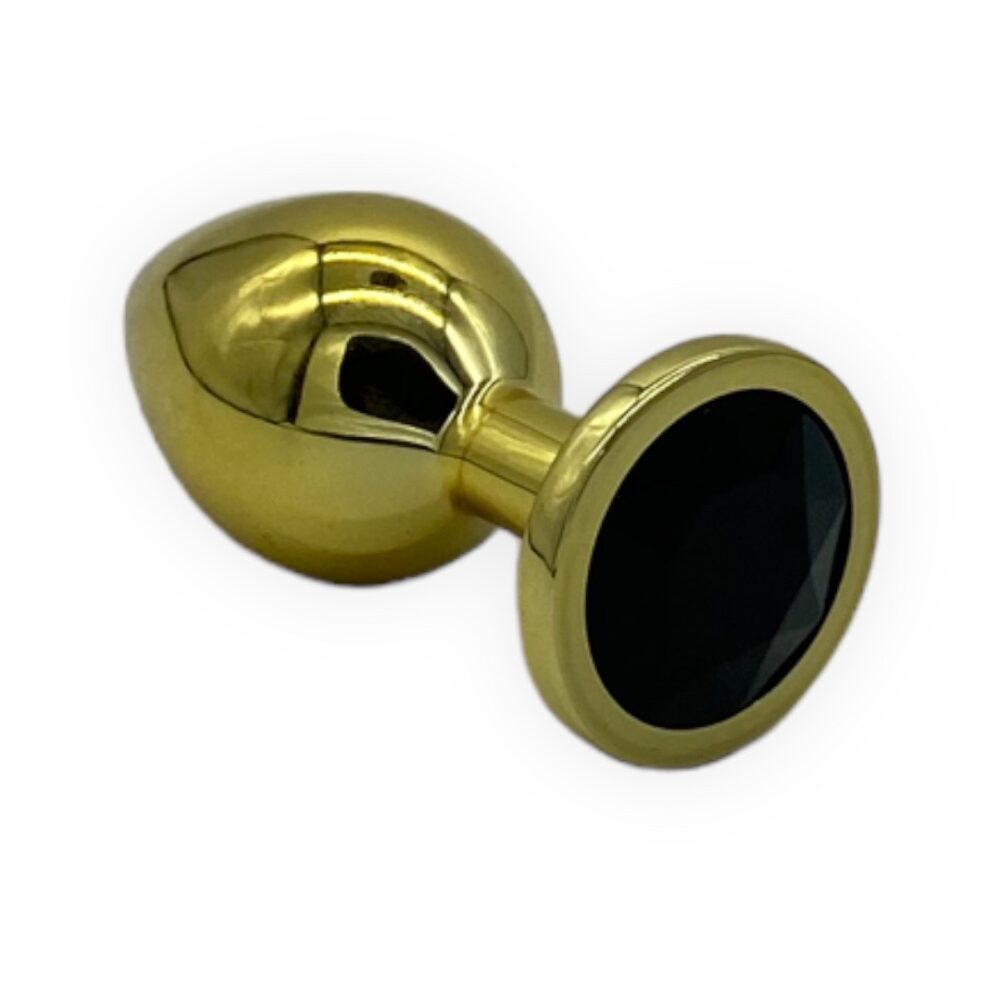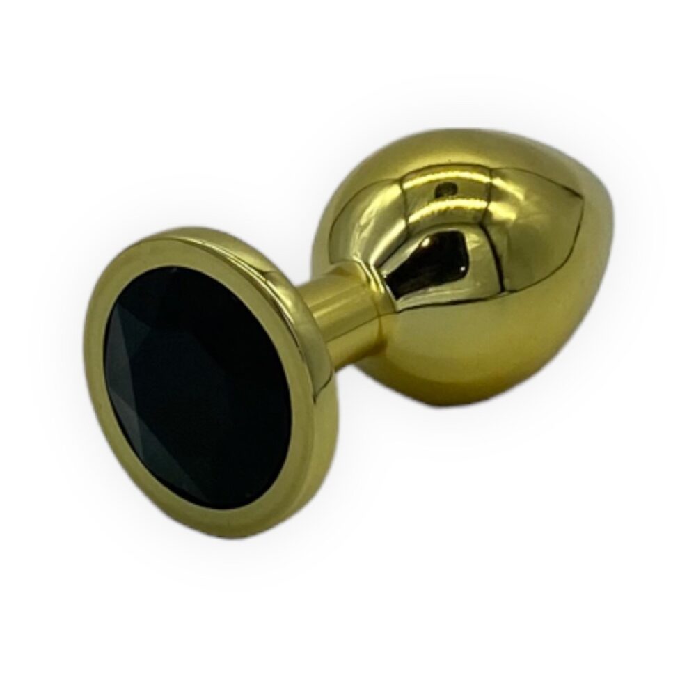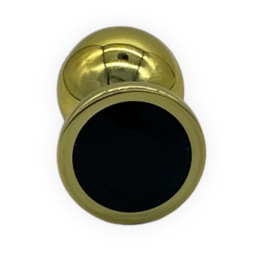Power Escorts - BR211Mblack - Diamond King Gold Plug Medium - Diameter 3.5 cm - Length 8.5 cm - Anal Plug - Gold with Black Stone