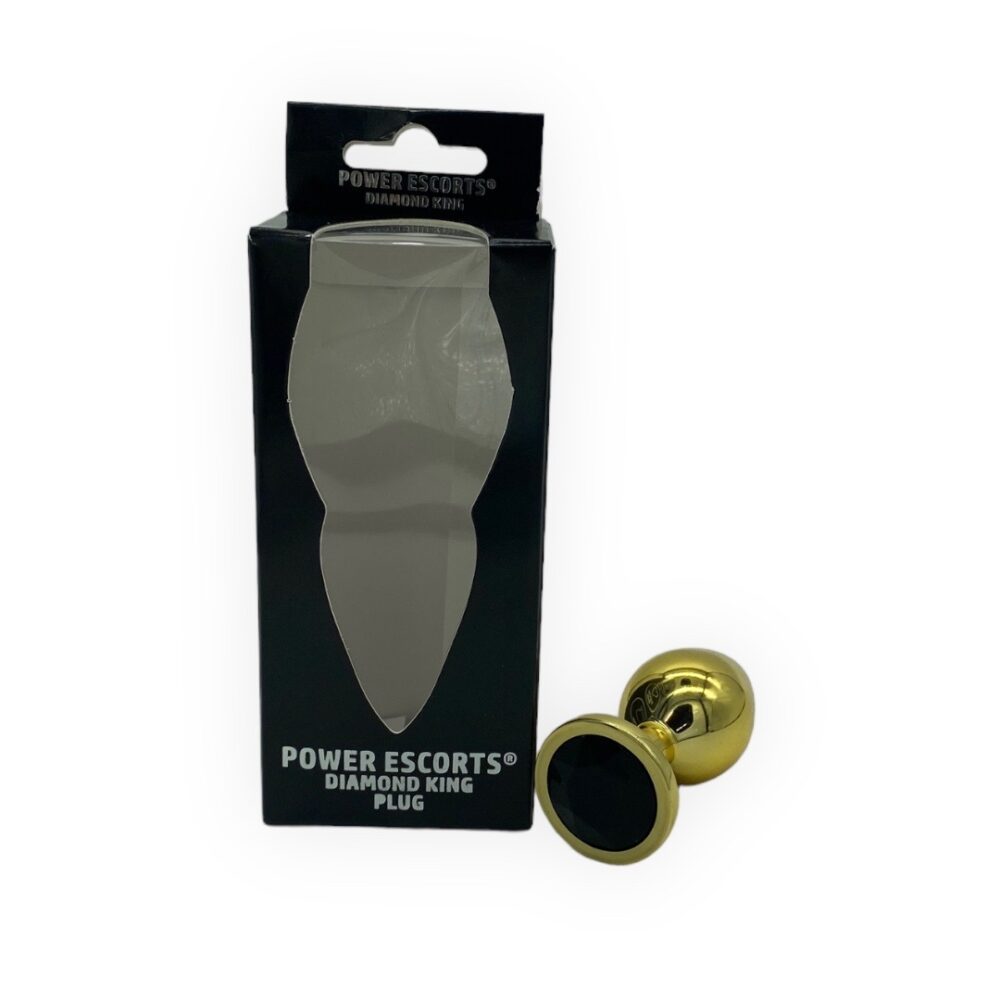 Power Escorts - BR211M - Diamond King Medium - Butt Plug - Gold with Black Stone