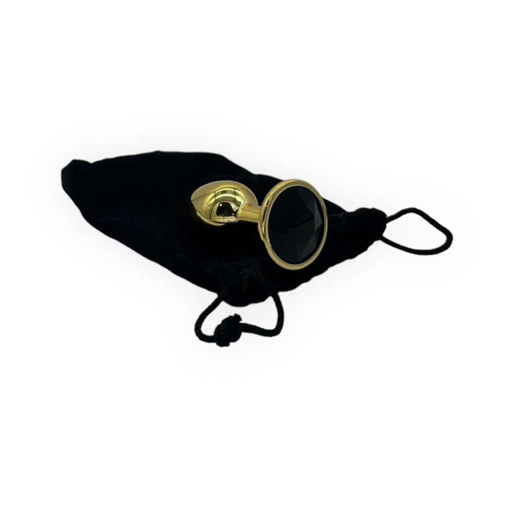Power Escorts - BR211S Black - Diamond King Gold Plug With Black Stone Small - Diameter 2.7 cm - Length 7 cm - Window Box
