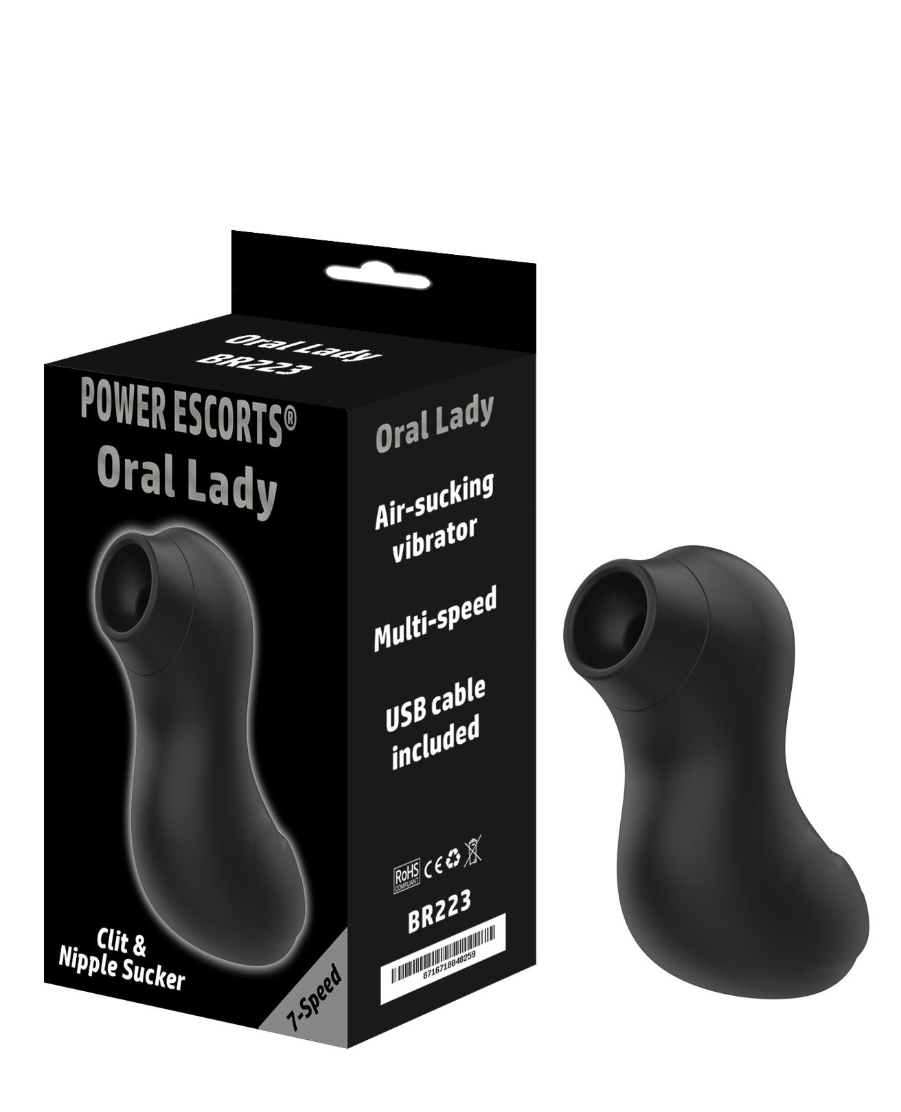 Power Escorts - BR223 - Oral Lady - Oral SUckerVibrator - Waterproof - Clit & Nipple Stimulator - Stylish - 7 Modes - Rechargeable - Black - Colourbox
