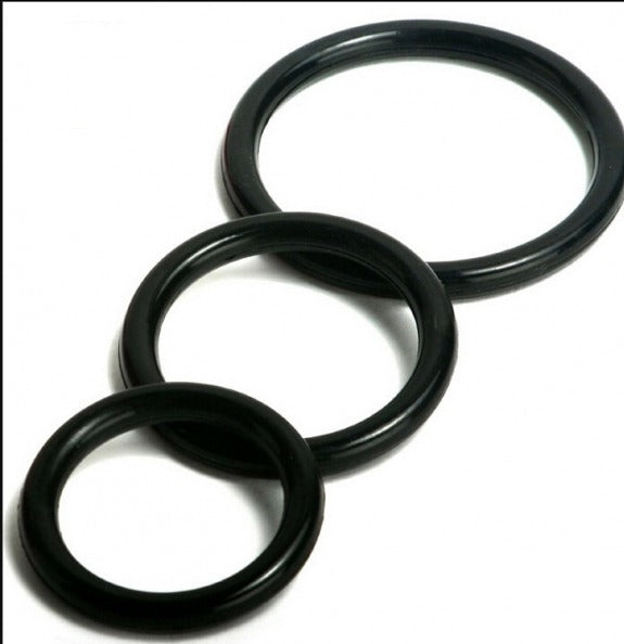Power Escorts presents Cockring 03 , a 3 pack cockring , silicone rings, colour black