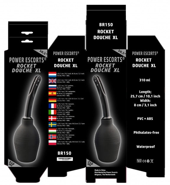 Power Escorts introduces the Rocket Anal Douche XL - Anal Shower - Suitable for Anal and Vaginal use - Rinse - Extra Large - 310 ML - BR150 - Black
