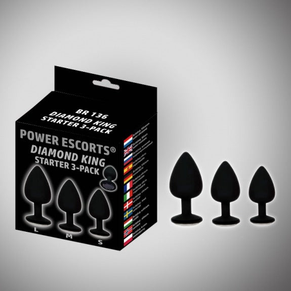 Power Escorts introduces the Diamond King Butt plug Starter 3-pack - Black with black stone - S / M / L - Br136