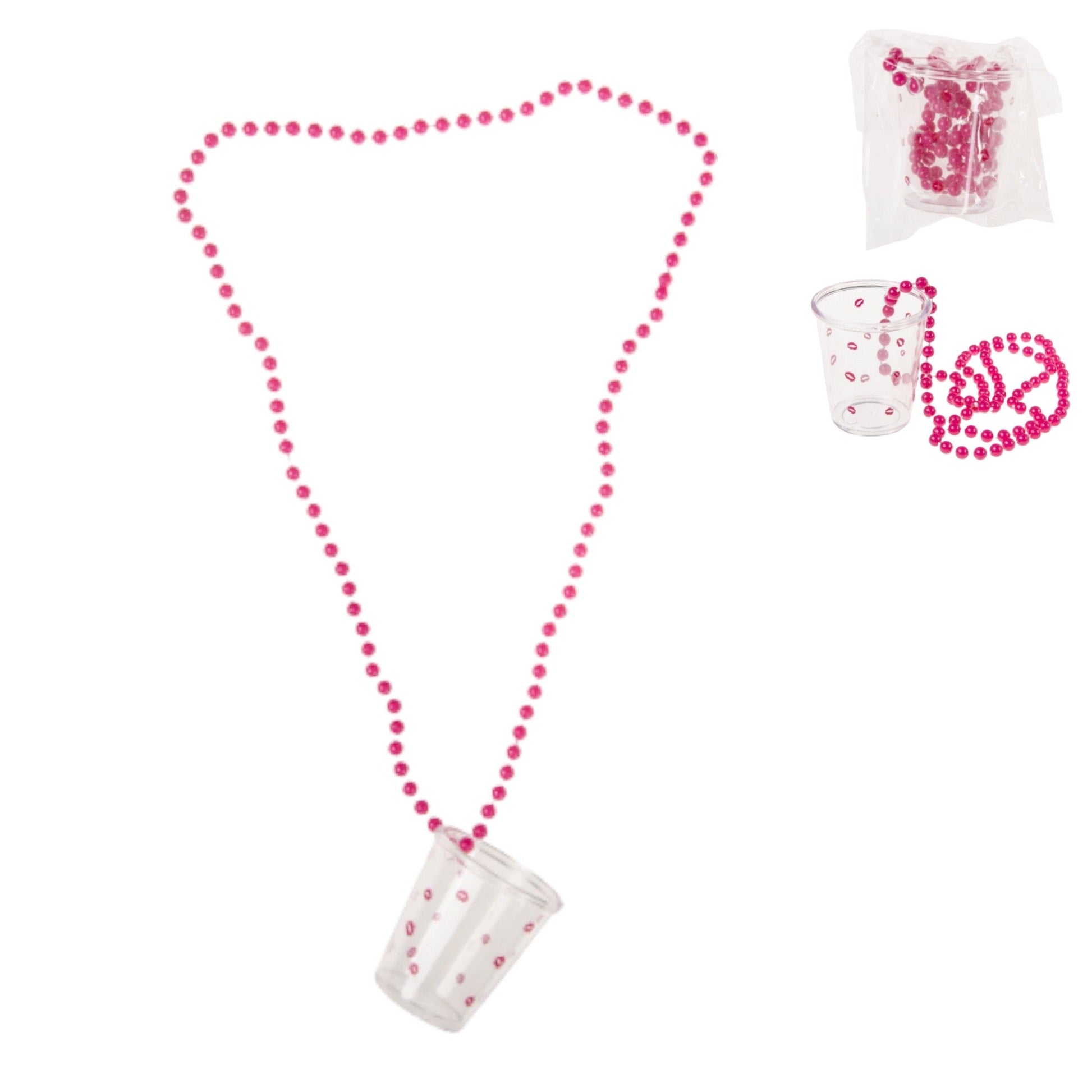 Ben je op zoek naar een stijlvol en handig accessoire om je drankjes te kunnen nuttigen tijdens feestjes en evenementen? Dan is de Shot Glas Ketting misschien wel iets voor jou! Deze ketting heeft een schattig lippenmotief en bevat een klein shot glas waaruit je gemakkelijk kunt drinken.