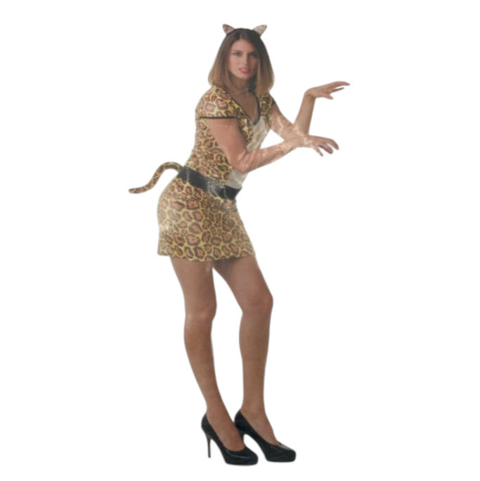 Laat je wilde kant zien met deze verleidelijke panter verkleedset voor vrouwen. De nauwsluitende jurk met panterprint benadrukt je rondingen op sexy wijze en zorgt voor een speelse, uitdagende look. De bijpassende panteroortjes en bijpassende staart maken de outfit helemaal af. Perfect voor spannende rollenspellen, themafeestjes of een pikante avond thuis. Dit is de ideale outfit voor wie durft te verleiden én te domineren.