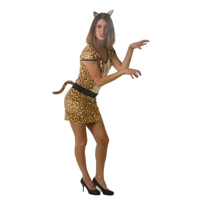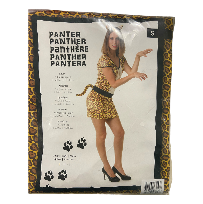 Inhoud: 1x jurk, 1x oortjes-haarband, 1x panter staart